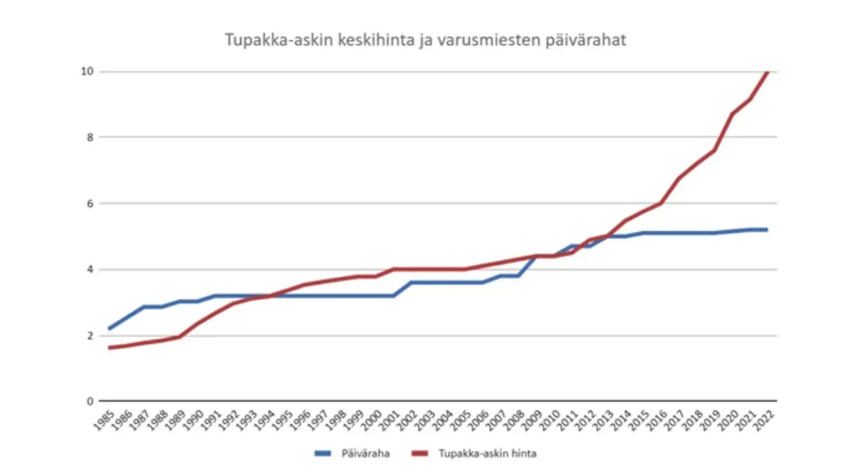 Varusmiesliitto näkee, että varusmiesten taloudellinen asema on heikentynyt merkittävästi vuosien varrella, koska päivärahojen korotukset ovat olleet lähinnä kosmeettisia eivätkä ole pysyneet inflaation mukana. Varusmiehet ansaitsevat toimeentulon, joka mahdollistaa kohtuullisen elintason palveluksen aikana. Indeksi, johon päivärahojen korotukset perustuvat tällä hetkellä tulee vuoden jäljessä eikä takaa riittävää korotusta, asettaen varusmiehet eriarvoiseen asemaan verraten esimerkiksi sosiaalietuuksia saaviin ihmisiin. Alla vertailun vuoksi tupakka-askin hintakehitys sekä päivärahojen hintakehitys. Varusmiesliitto ei kannata tupakointia tai muiden tupakkatuotteiden käyttöä, vaan vertailua käytetään havainnollistamaan varusmiesten taloudellista ahdinkoa.